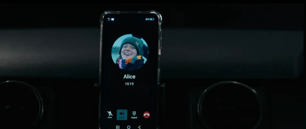 As the night progresses, the surface tension between Maddie and Frank slowly bubbles to the forefront. Their conversations reveal layers of guilt, mistrust, and unresolved grief. Alice’s voice, delivered through phone calls and frantic messages by Megan McDonnell, adds a haunting urgency that drives the film’s emotional core. But just as you start to feel grounded in this intimate family drama, the film’s tone shifts toward something more mysterious and supernatural, complicating the straightforward rescue mission and raising questions about what’s truly threatening them.