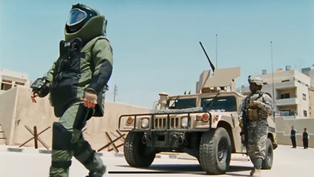 Yet the film isn’t just about danger, it’s about what that danger does to people. Renner’s performance captures the paradox of a man who thrives in chaos but struggles in normal life. In one of the film’s most famous scenes, James returns home and stands in a grocery store aisle, overwhelmed by the sheer banality of everyday choices. After everything he’s seen, nothing compares to the intensity of war. It’s a moment that drives home the central thesis: for some soldiers, combat isn’t just a duty, it becomes a compulsion.