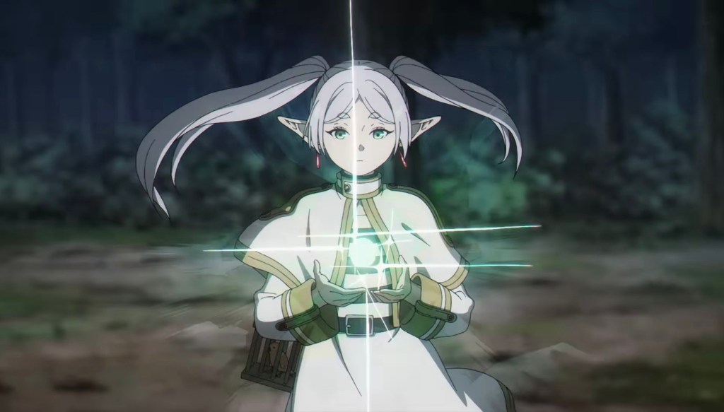 The action sequences, while brief compared to other fantasy anime, are beautifully executed. They arrive almost by surprise, tucked between moments of exploration or reflection. Instead of overwhelming the story, they accentuate it. The animation of the magic is fluid, deliberate and grounded in rules that feel both ancient and logical. Nothing is flashy for the sake of being flashy, an observation Frieren herself makes on several occasions. Magic has weight, consequence and history, and that makes the battles far more engaging than the average spectacle driven fight scene.